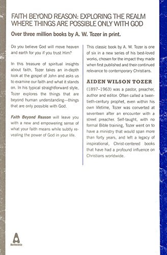 A. W. Tozer (1897–1963) comenzó su búsqueda de Dios de por vida después de escuchar a un predicador callejero en Akron, Ohio, a los diecisiete años de edad. Tozer, teólogo autodidacta, entregó su vida al ministerio de la Palabra de Dios como pastor, escritor y maestro. Por su prosa fluida, palabras llenas del Espíritu y profunda convicción, muchos lo han llamado un profeta de nuestros días. Es el autor del amado clásico La búsqueda de Dios y muchas otras obras.
