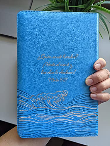 Biblia Reina Valera 1960 letra grande. Símil piel aguamarina, cremallera, tamaño manual