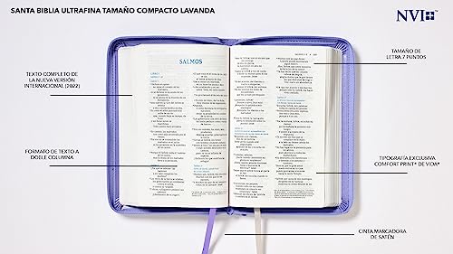 NVI, Santa Biblia, Revisión 2022, Ultrafina, Tamaño compacto, Leathersoft, Azul lavanda, con Cierre, Palabras de Jesús en Rojo, Comfort Print