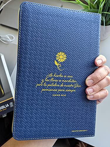 Biblia RVR 1960 letra grande, tela azul con flores tamaño manual (Tapa dura)