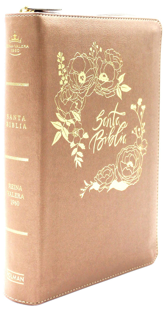Biblia para Mujeres Reina Valera 1960 Letra Gigante de 14 Puntos Tamano Manual con Cierre y Indice Semil Piel Color Rosa Perla con Dorado Edicion Limitada