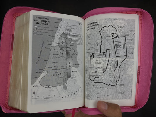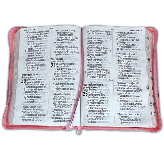 Biblia RVR60 - Concordancia, Tapa en imitación cuero rosa noble, ziper, indice y Fuente de Bendiciones. (Spanish Edition)