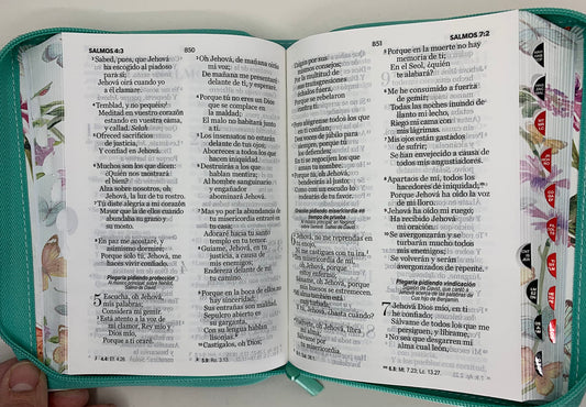 Biblia con Cierre Letra 11 puntos REINA VALERA 1960 mariposas TURQUESA con indice