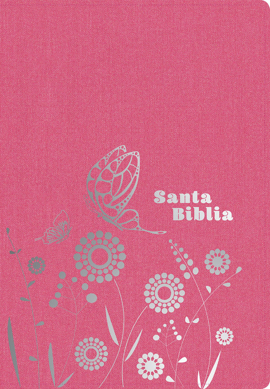 Biblia Reina Valera 1960 letra grande. Tapa Dura, Tela rosada con flores, tamaño manual