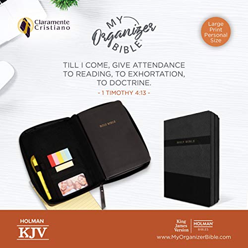 King James KJV Large Print Zippered Bible with Organizer Cover, black leathertouch indexed - My Organizer Bible