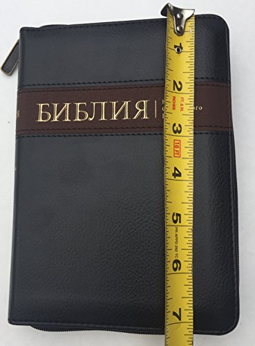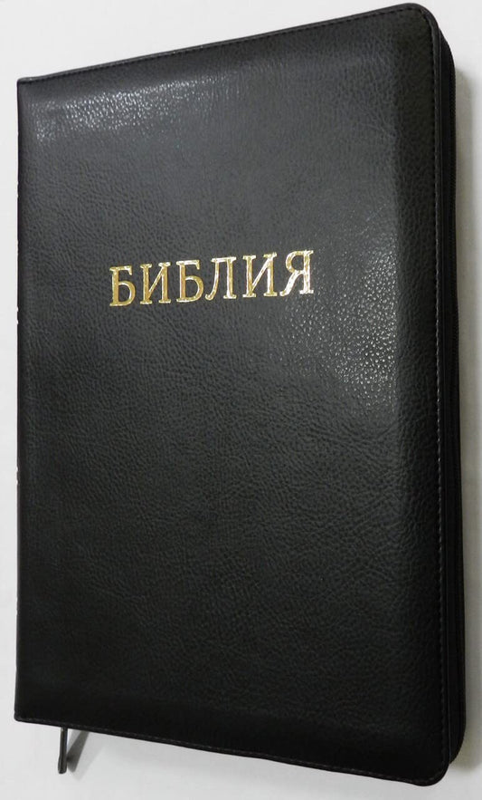 Russian Bible Black Leather Cover. Large Size 18X25 cm. 077 format. With Zipper, Indexes for searching for books. Библия на русском. Натуральная кожа