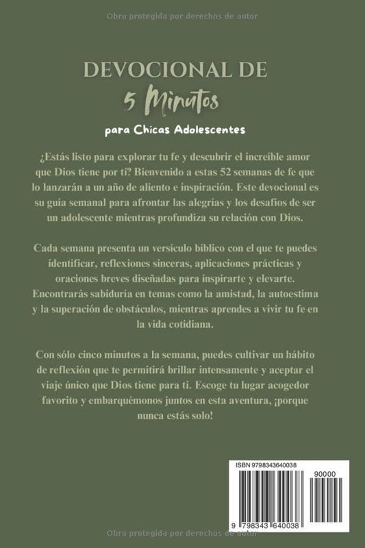 Devocional De 5 Minutos para Chicas Adolescentes: 52 semanas inspirando reflexiones diarias para construir confianza, crecer en la fe y navegar los ... con la sabiduría de Dios (Spanish Edition)