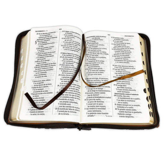 Biblia Letra Grande Tamaño Manual con Cierre Imitacion Piel Marron con Concordancia e Index Reina Valera 1960