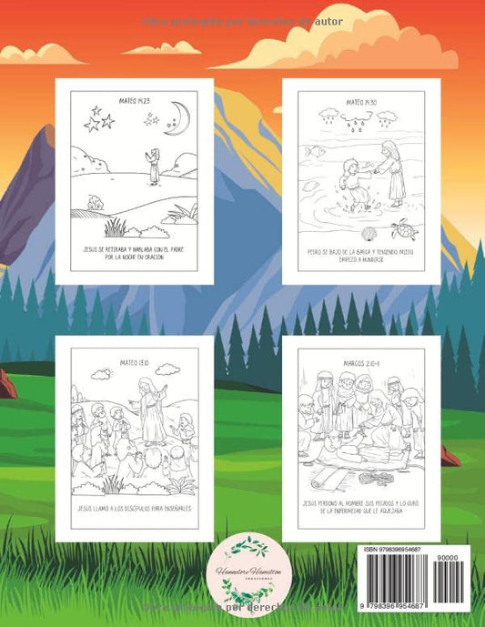 Historias bíblicas para colorear: Libro Cristiano para Colorear sobre la Biblia para niños (Spanish Edition)
