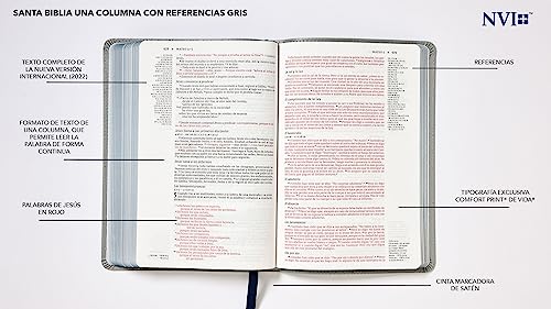 NVI, Santa Biblia, Texto revisado 2022, Una Columna con Referencias, Piel Reciclada, Palabras de Jesús en Rojo, Gris, Comfort Print