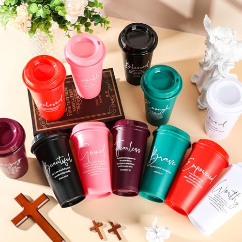 ▶ 12 vasos inspiradores cristianos con tapa y pajita, 16 onzas, vasos religiosos de plástico para beber para hombres y mujeres, regalos para fiestas de Navidad, voluntarios de Acción de