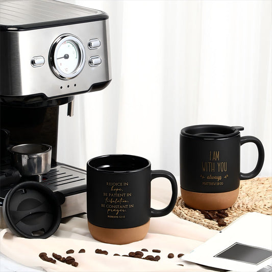 ▶ Taza de Café de Cerámica Con Borde Lila - 12 oz Taza de Café y Té Inspiradora Segura Para Microondas y lavaplatos Con Versículo Bíblico: Quédense Quietos y Sepan - Salmo 46:10
