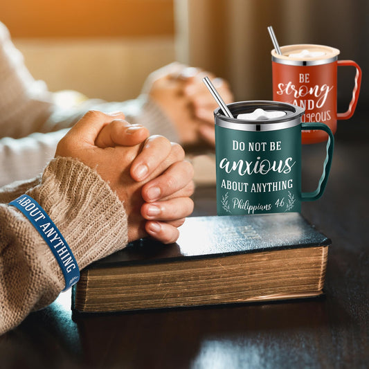 ▶ Juego de 18 tazas de regalo cristiano para mujer, incluye 6 tazas de café cristianas de 17 onzas con tapa, pajita, pulseras de silicona, versículo religioso de la Biblia, regalos para amigos