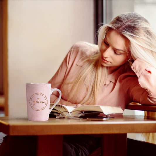 ▶ Taza grande de cerámica para café y té para mujer: las palabras amables son como el versículo bíblico inspirador, no tóxico/sin plomo, apto para microondas y lavaplatos, taza de