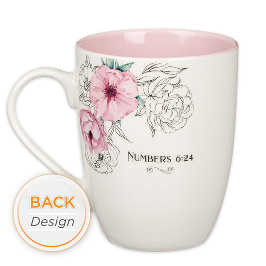 ▶ Taza de café y té de cerámica para mujer: May the Lord Bless You and Keep You - Números 6:24 versículo bíblico inspirador, floral, rosa, 12 onzas