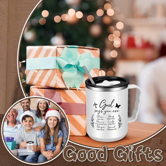 ▶ Regalos cristianos para mujeres, regalos religiosos, regalo alentador de inspiración para mujeres mayores, vasos cristianos de 40 onzas con asa y tapa, taza de café de viaje cristiano