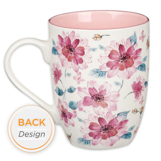 ▶ Christian Art Gifts - Taza de cerámica para café y té para mujer: fuerza y dignidad, proverbios 31:25, versículo bíblico inspirador, floral, rosa, 12 onzas, MUG1063