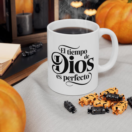 ▶ Taza Cerámica 11 oz El Tiempo De Dios Es Perfecto Regalo Cristiano Inspirador Para Hombre Mujer Pastor Católico Creyente Jesús Fe Esperanza Oración Frase Bíblica Café Té Religioso Espiritual