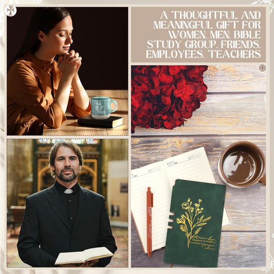 ▶ Regalos de la iglesia cristiana para mujeres y hombres, tazas de café cristianas a granel, taza de cerámica con versículo de la Biblia, cuadernos de oración religiosa, bolígrafos
