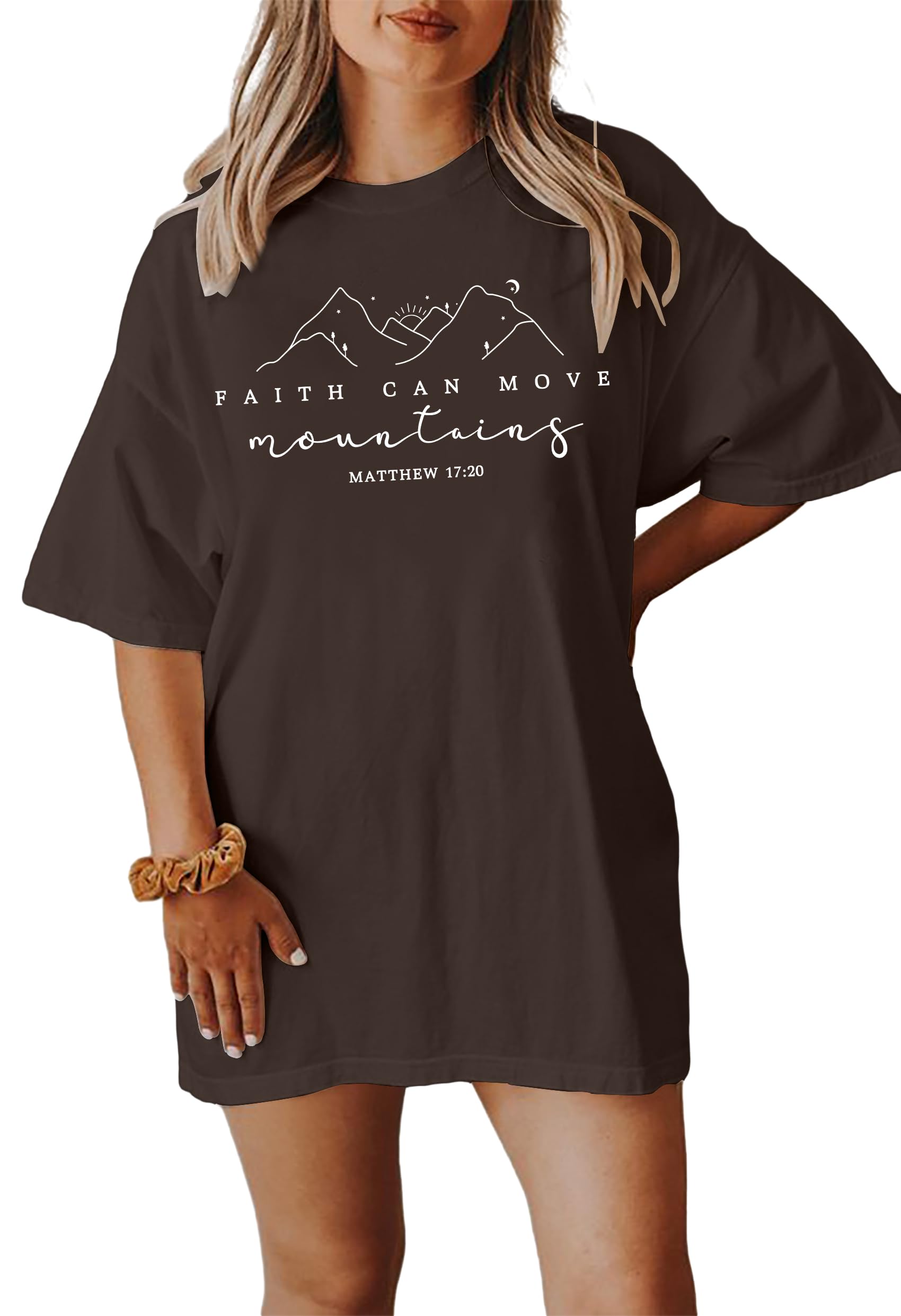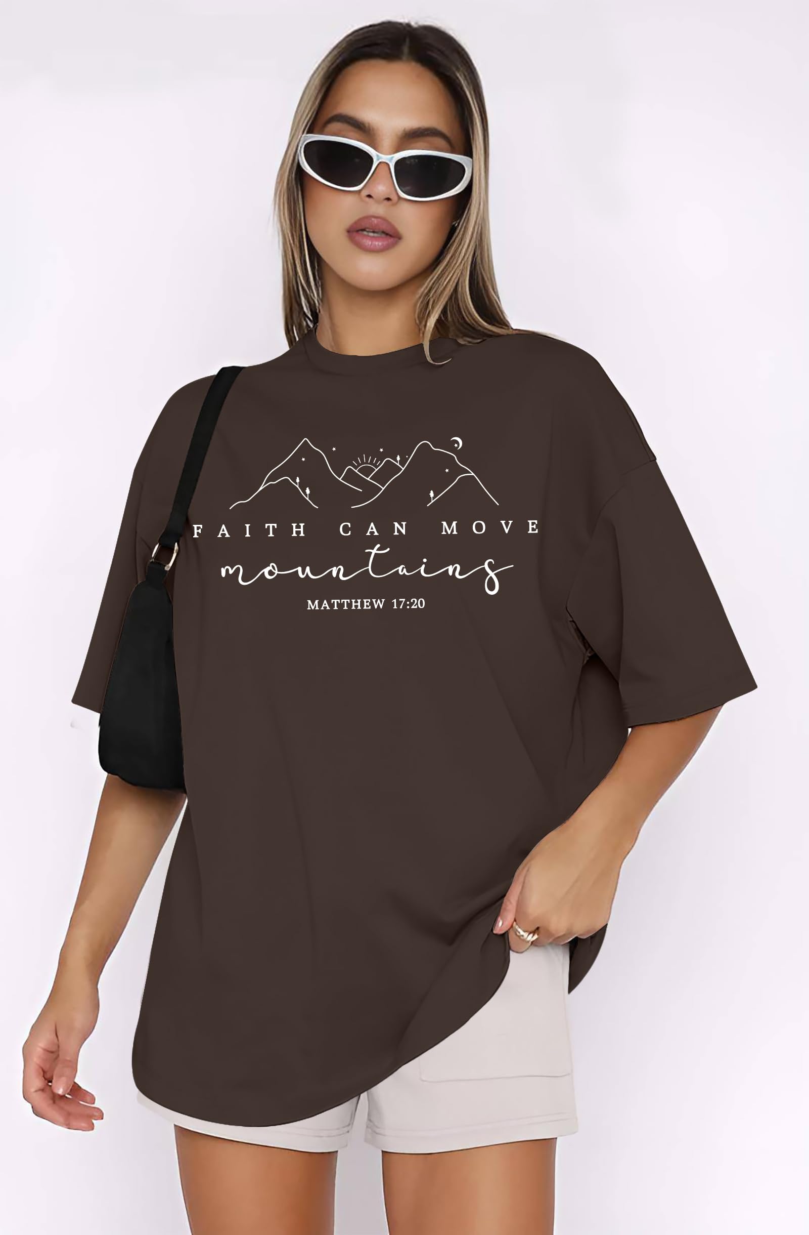▶ Camisetas de gran tamaño para mujer, camisas cristianas de fe sobre el miedo, camisetas de Jesús, holgadas, informales, religiosas, marrón (3), Small