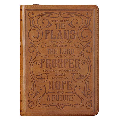 Classic Faux Leather Journal for I Know the Plans Jeremiah 29:11 Bible Verse Bible Verse Brown Inspirational Notebook, Lined Pages W/Scripture, Ribbon Marker, Zipper Closure