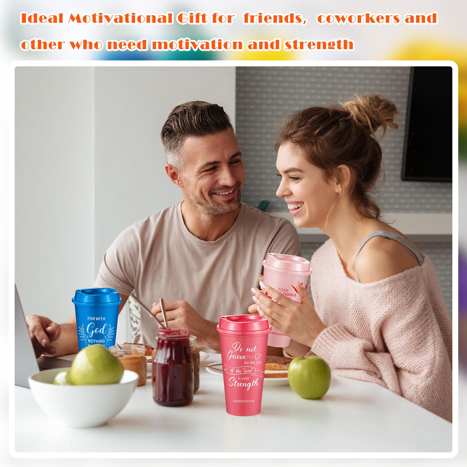 ▶ Tazas de Café Cristianas Vaso de Café de Plástico de Versículos Bíblicos con Tapas 16 oz Tazas Reutilizables con Motivos Religiosos Inspiradores Regalos Cristianos para Cumpleaños Navidad
