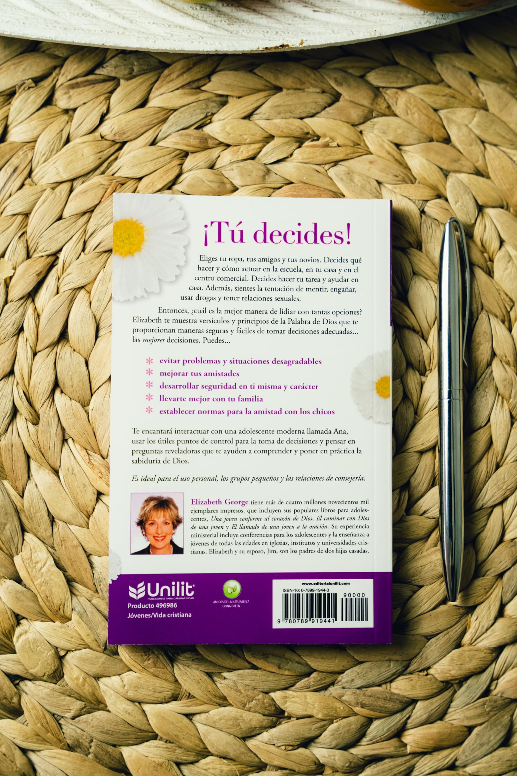 Detalles: La maestra de Biblia Elizabeth George lleva a las jóvenes, paso a paso, por el proceso de tomar decisiones vitales, piadosas y sabias en esferas que incluyen: el control de las emociones, el mejoramiento de las relaciones, el desarrollo de la confianza, la vida en el centro de la voluntad de Dios y el evitar problemas y malas situaciones.