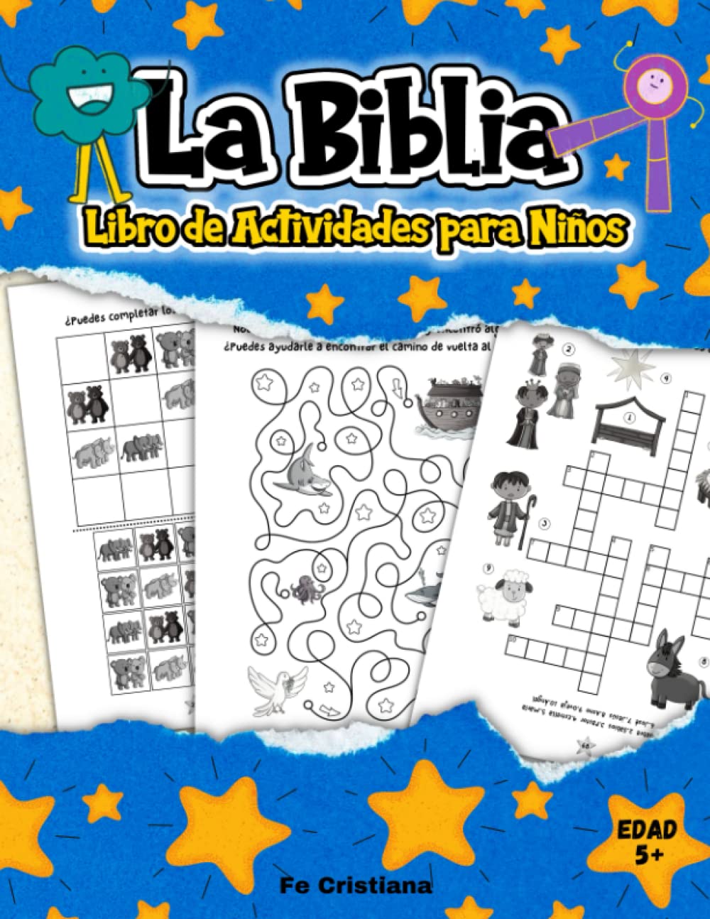 Detalles: Este Libro de Actividades Bíblicas para Niños contiene más de 70 páginas de actividades divertidas y educativas diseñadas para ayudar a los niños a reforzar su comprensión de la Biblia. Los temas bíblicos que aparecen en este libro incluyen Adán y Eva, el Arca de Noé, David y Goliat, Jonás y la ballena, Daniel, así como otros temas del Nuevo Testamento como la Navidad y la Pascua.