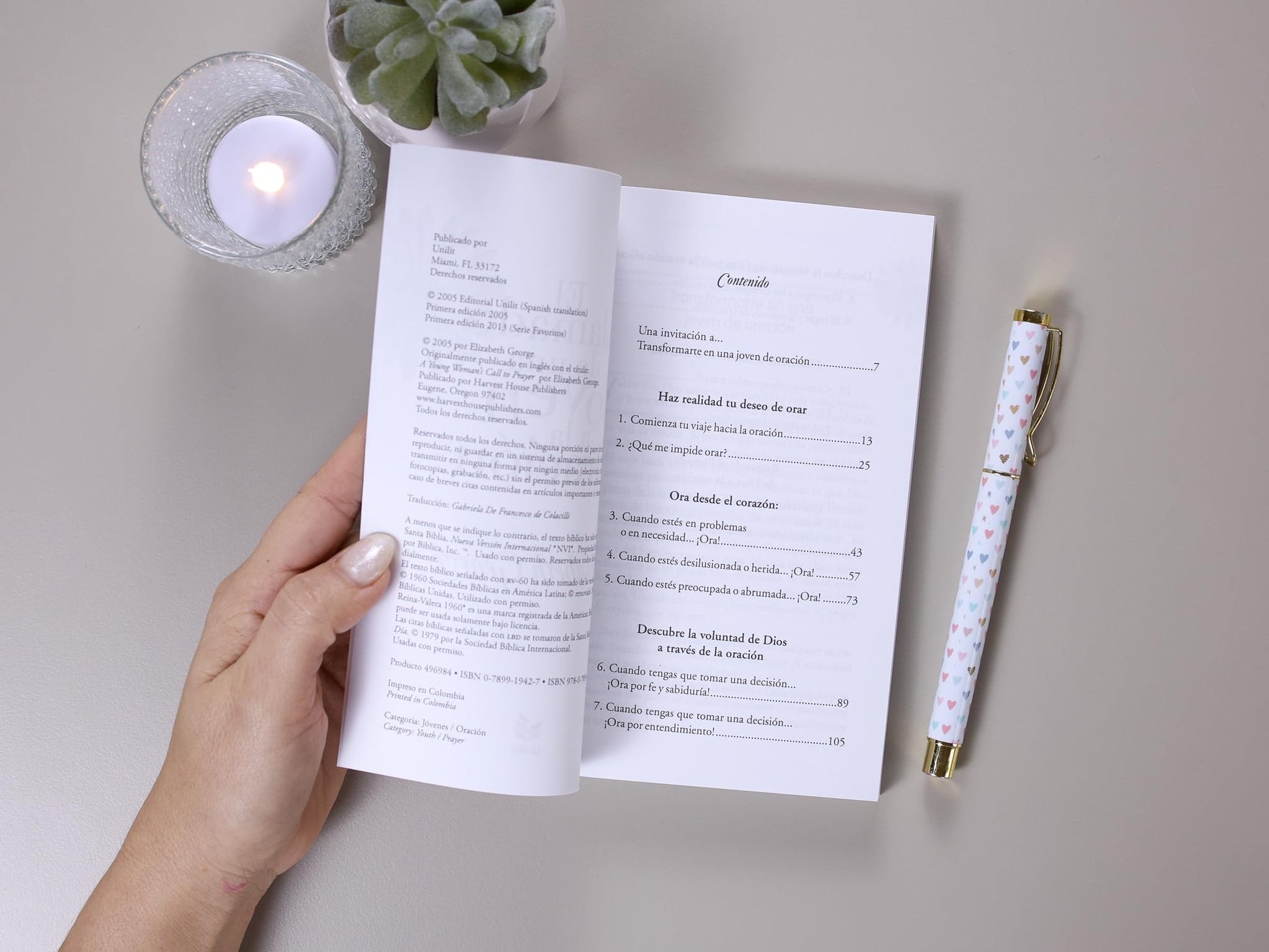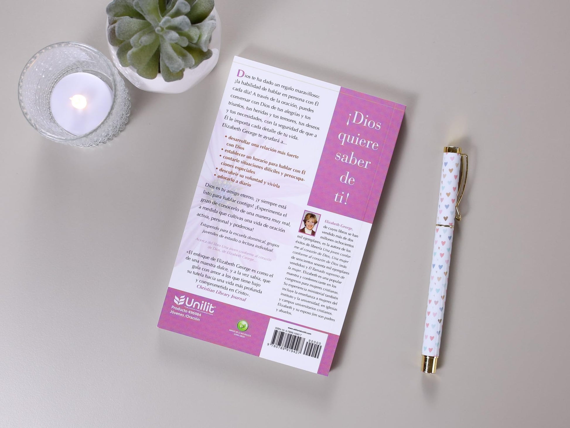 Detalles: Dios te ha dado un regalo maravilloso: ¡la habilidad de hablar en persona con Él cada día! A través de la oración, puedes conversar con Dios de tus alegrías y tus triunfos, tus heridas y tus temores, tus deseos y tus necesidades, con la seguridad de que a Él le importa cada detalle de tu vida. Elizabeth George te ayudará a... -Desarrollar una relación más fuerte con Dios. -Establecer un horario para hablar con Él. -Contarle situaciones difíciles y preocupaciones especiales. -Descubrir su voluntad y vivirla diario. Dios es tu amigo eterno, ¡y siempre está listo para hablar contigo! ¡Experimenta el gozo de conocerlo de una manera muy real, a medida que cultivas una vida de oración activa, personal y poderosa!