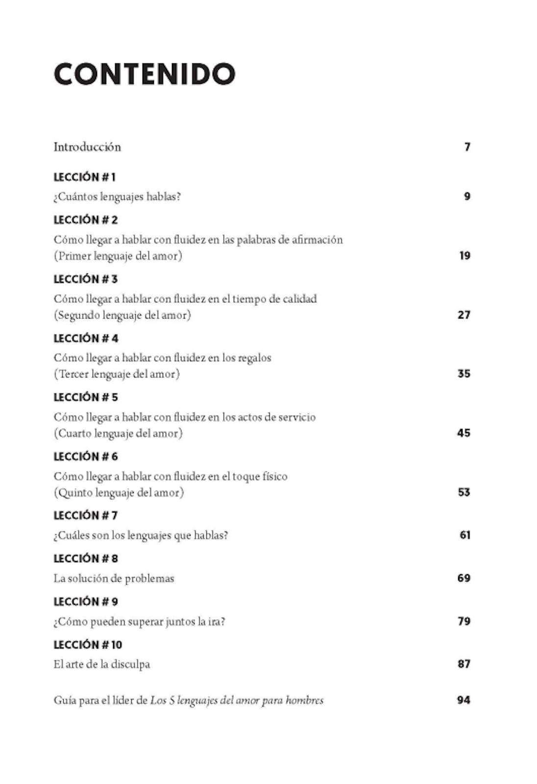 Las diez lecciones de este cuaderno fueron creadas para fortalecer y profundizar tu relación con tu ser amado. Estas lecciones te brindan estrategias viables para aplicar los principios de Los 5 Lenguajes del Amor(R) para hombres. Te ofrecen vislumbres del potencial de tu relación cuando tú y tu pareja hablan el lenguaje del amor del otro.