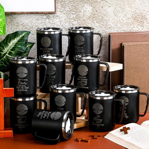 - Práctico juego de tazas de café: incluidas en el paquete hay 10 tazas cristianas con 10 tapas herméticas, 10 pajitas y 10 cepillos de pajita, y cada taza mide aproximadamente 3.35 pulgadas de diámetro inferior y 4.53 pulgadas de altura; con una capacidad de aproximadamente 17 onzas, son ideales para tu bebida diaria de café. o o otros otros otros o o de bebida que te gustaría saborear