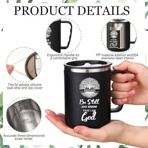 - Construcción resistente: nuestra taza de versículo bíblico está hecha para durar con un exterior hecho de material PP y un interior hecho de acero inoxidable 304; estas tazas pueden soportar la prueba del tiempo, y la tapa adopta una tira de sello de silicona, lo que puede hacer que tu bebida mantenga su temperatura ideal