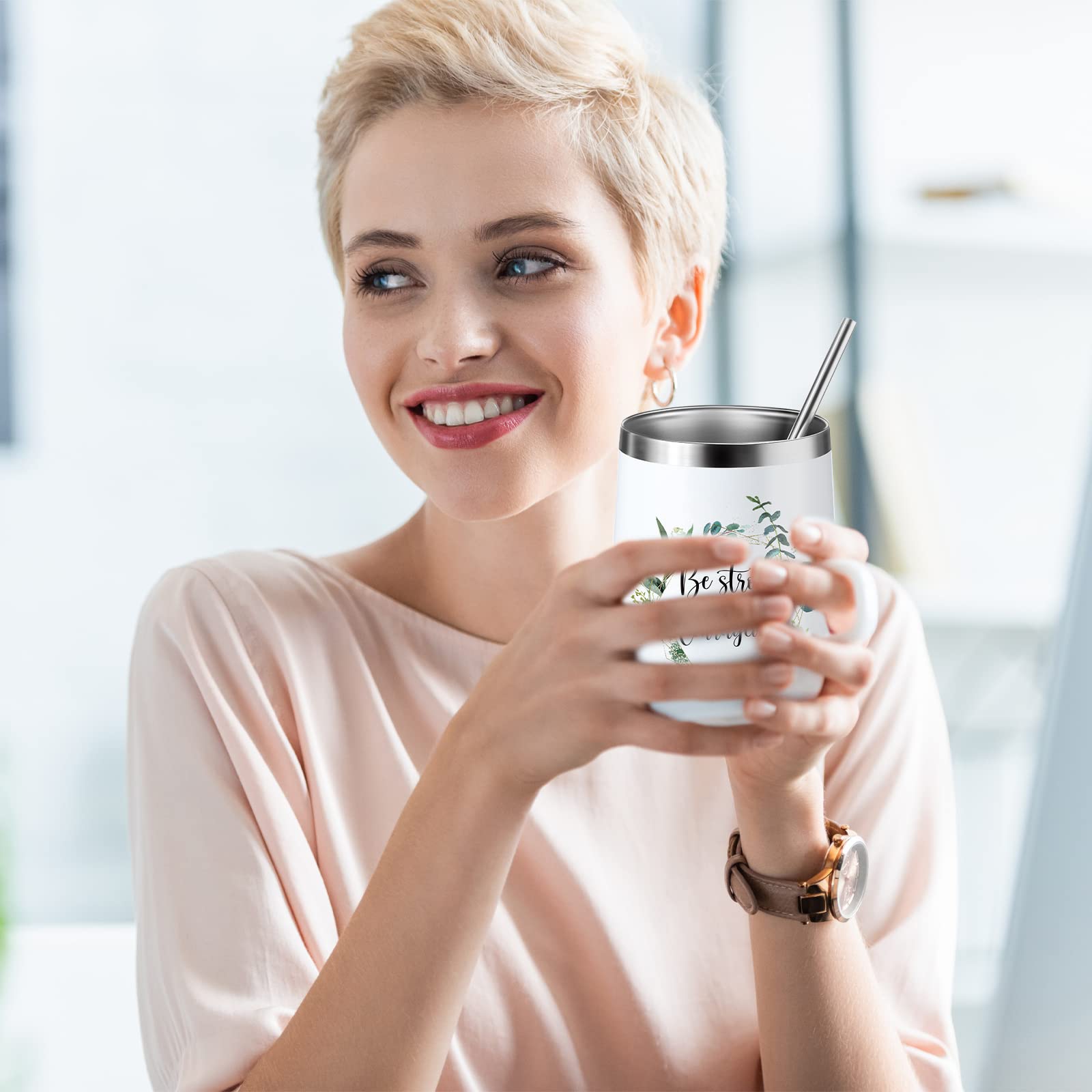 1 x Taza de café inspiradora para mujer con tapa, pajita y cepillo para pajita
