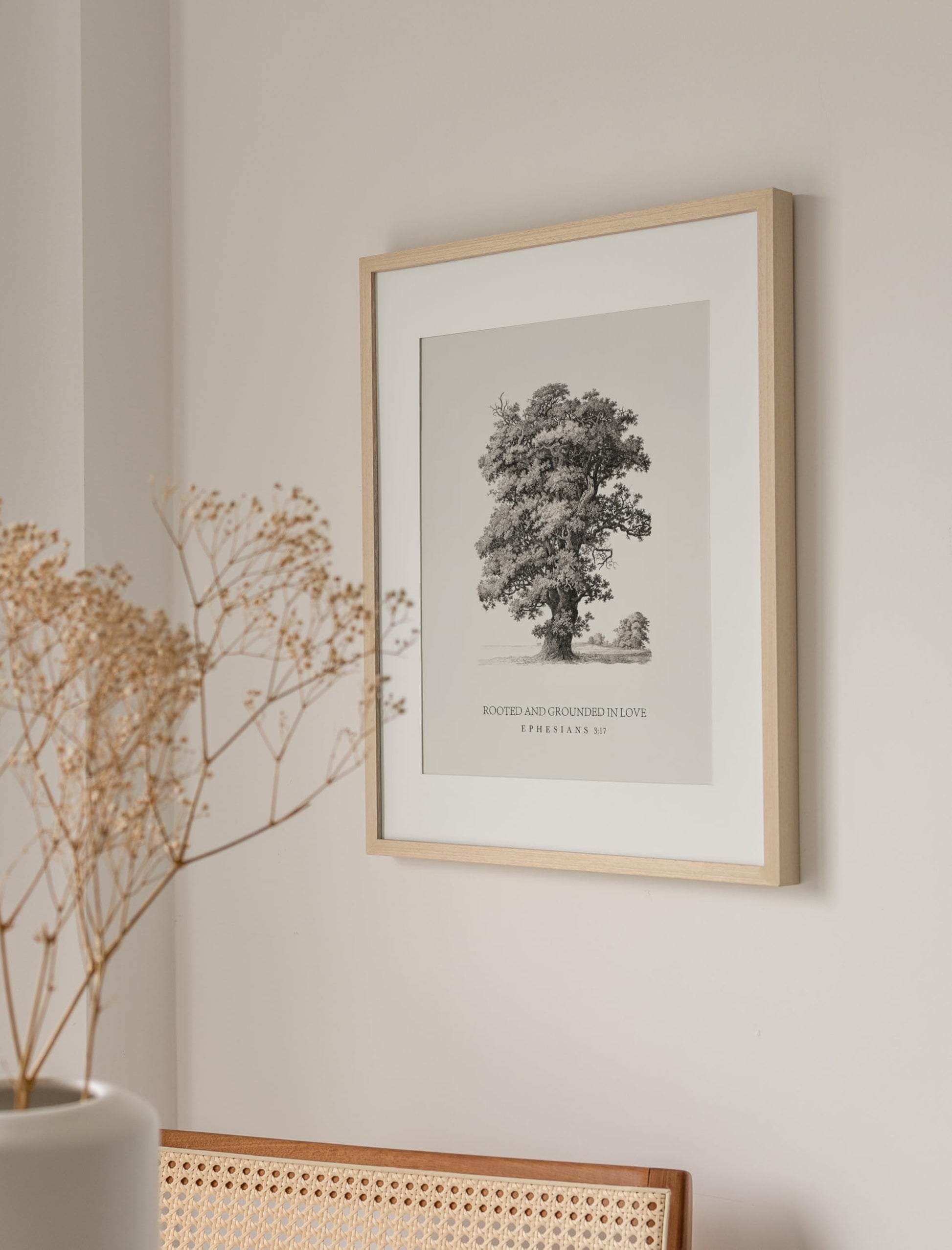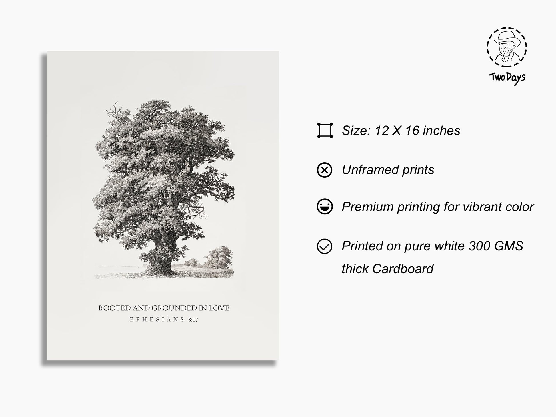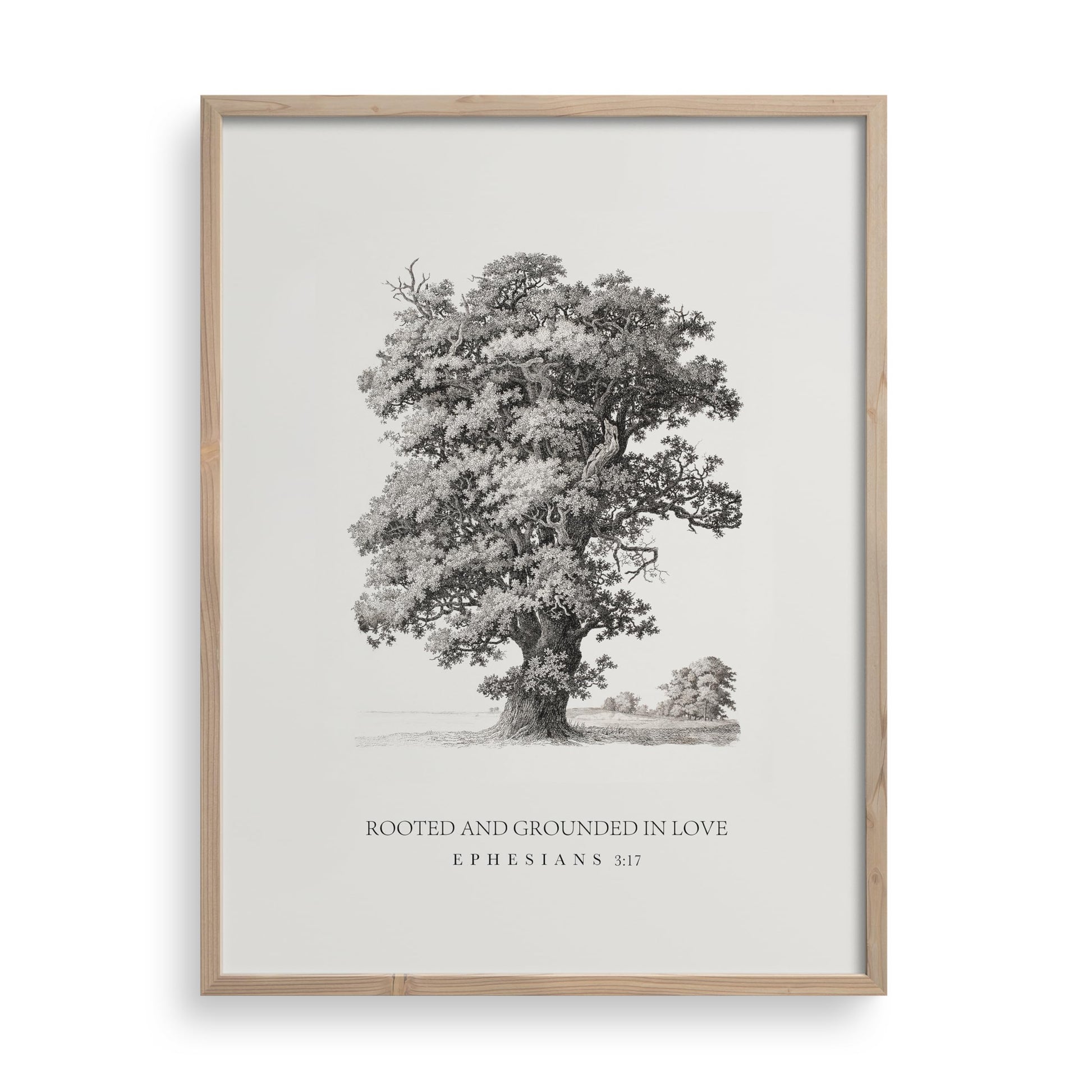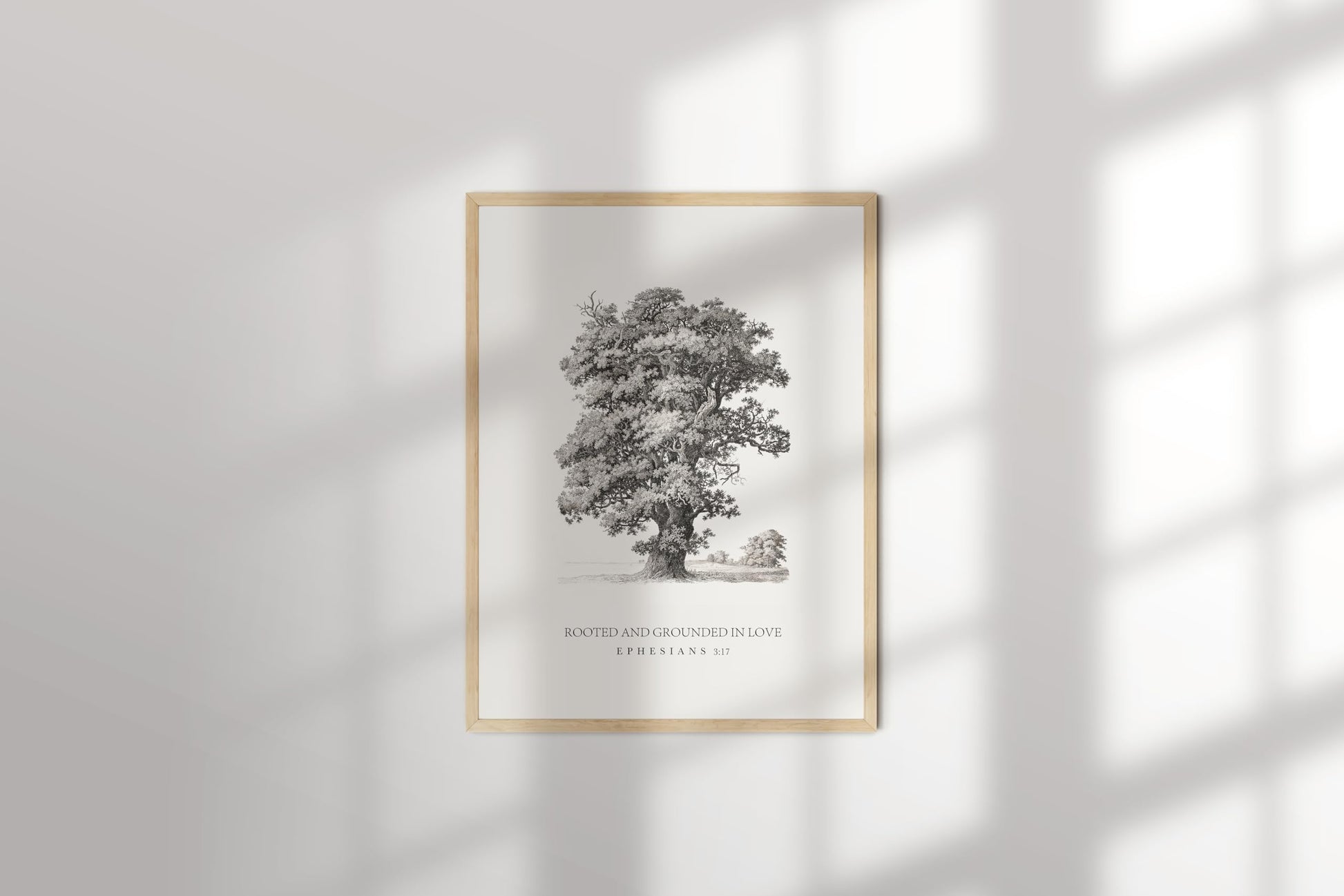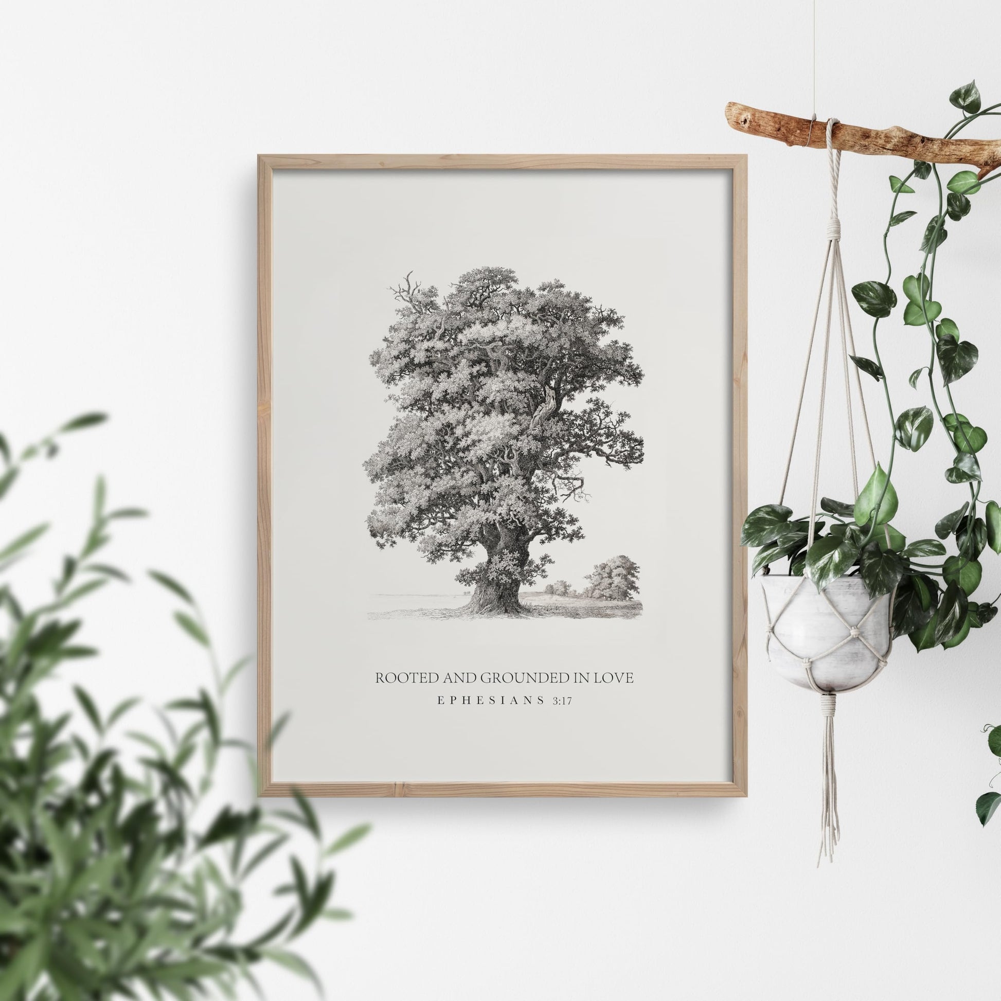 ▶ Arte cristiano de pared, versículos bíblicos arraigados y arraigados en el amor, pintura de las escrituras grandes, póster religioso de Efesios 3:17, obra de arte de árbol clásico para el