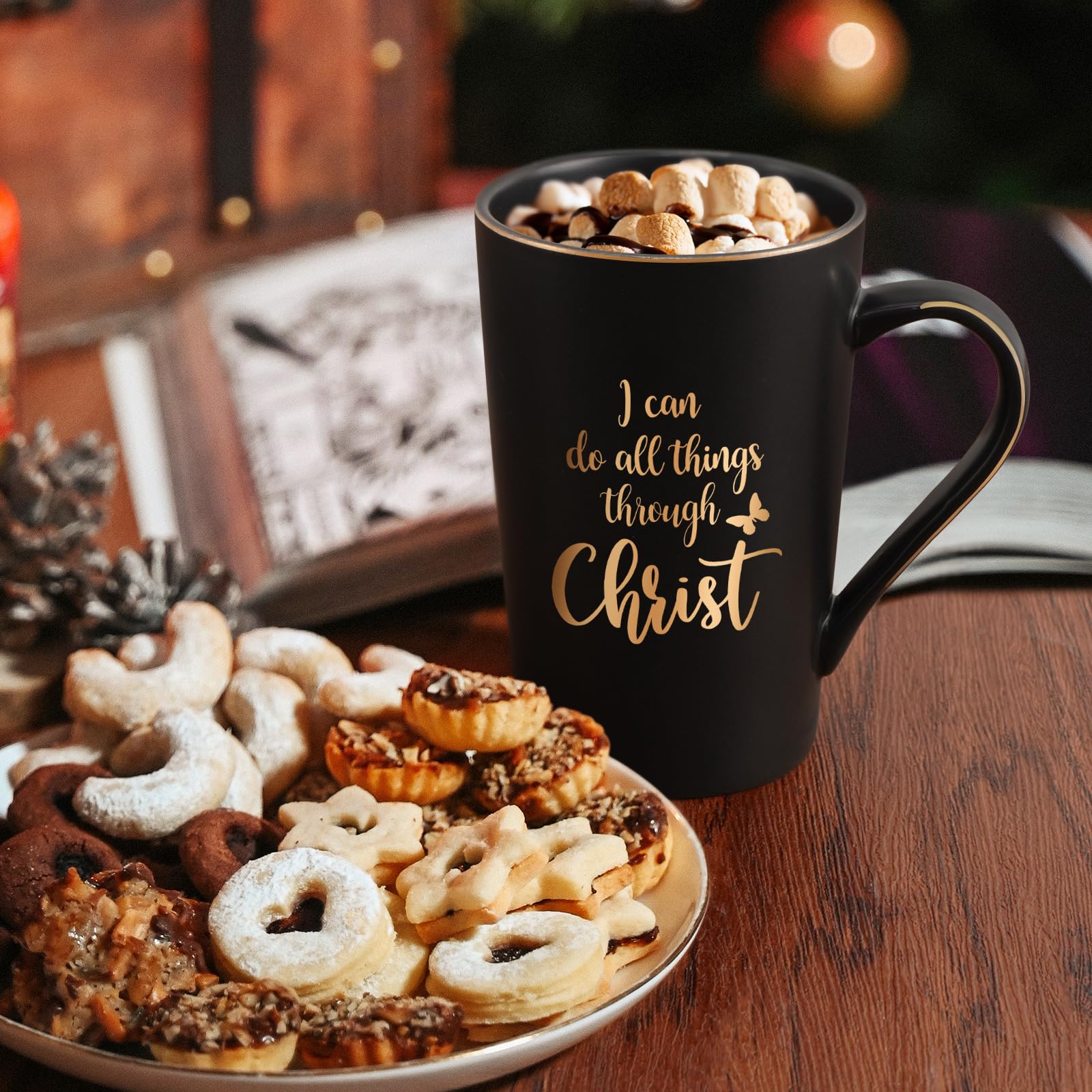 ▶Taza de café cristiana, I Can Do All Things Through Christ, taza de sacerdote, 14 onzas, cerámica, regalo religioso, Navidad